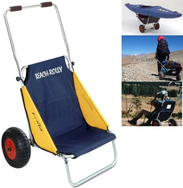 De Eckla Beach/ surftrolley , ideaal om je set windsurfspullen mee naar het water te vervoeren .