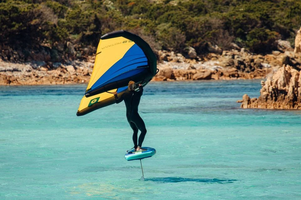 Om de berijder meer controle over de vlucht te geven en de ernst van eventuele wipe-outs te verminderen, is de foil gemonteerd op een aluminium mast van 75 cm.