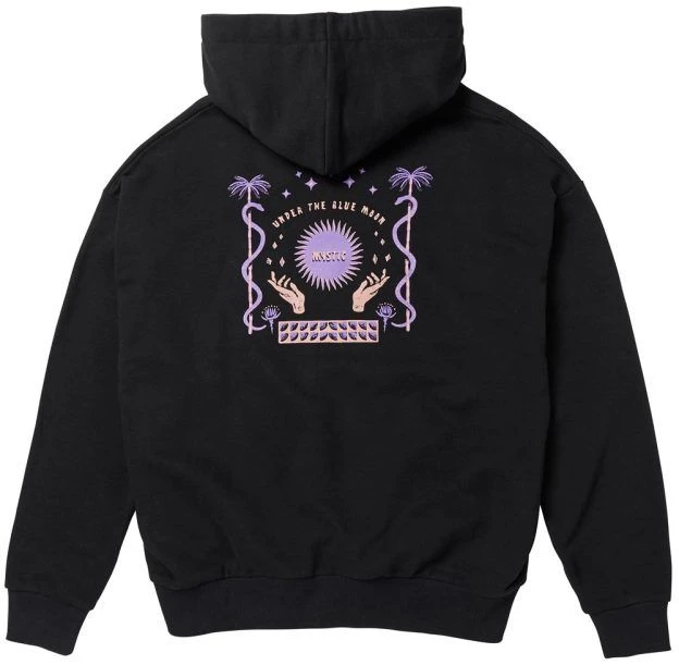 De Paradise-sweater is gemaakt van 100% biologisch katoen en fleece. Deze sweater is verkrijgbaar in zwart en heeft een kleurrijke Blue Moon-artwork op de achterkant.