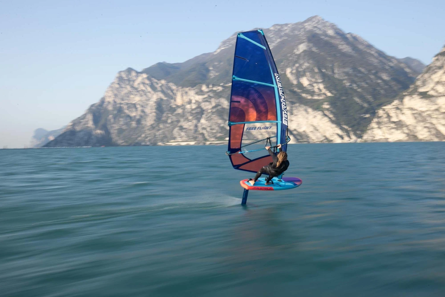 The new Free Flight Foil Sail impresses with it’s super easy handling and maneuverability. It is the perfect sail for someone, who is just getting into foiling or wants to focus more on freemoves on the foil. This sail is your go-to for easy gybing, ducking and carving, as well as easy and controlled freeriding. Together with the foil, this sail rotates effortless. This 4 batten and 1 intercam sail (2 cams on the 6.6) is extremely lightweight and has great profile stability, so that you can quick start in lower winds, and truly focus on the feeling of gliding over the water. The one-cam design allows the sail to keep a forward opened profile, while it doesn’t overstep the backhand, truly a front hand driven sail. We have made it our mission to keep this sail really light, hence, only in its biggest size we added one more intercam. Furthermore, we ensured that even with less wind, this sail sets up and is ready to go – your