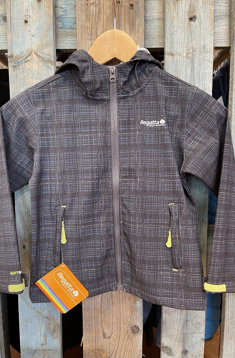 Regatta softshelljack voor kinderen. De jas heeft twee zakken met ritssluiting, vaste capuchon met klittenband en verstelbare manchetten. De softshell jas is versierd met een print en heeft trekkoorden met stoppers aan de onderkant.. Een soepel en licht jack, ideaal voor buitenactiviteiten.