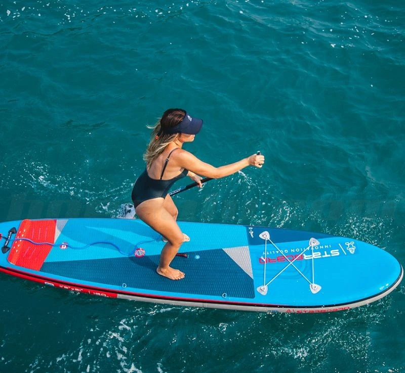 Ervaar het verschil van de Starboard sup zelfs voordat je het water ingaat, deze lichtgewicht SUP boards zijn voorzien van de kenmerkende Starboard draagriem waarmee je hem moeiteloos naar het water kunt dragen, met beide handen vrij! Voordat je aan board stapt, kun je jezelf vastzetten met de meegeleverde platte lichtgewicht leash, veilig en comfortabel peddelen, wetende dat je board een reddingsvlot is. De Bungee-banden bij de neus zijn goed voor het opbergen van allerlei soorten droog tassen of spullen voor je volgende grote SUP-avontuur.De opblaasbare SUP-boards van iGO staan erom bekend stabiel te zijn, een goede snelheid te hebben en supergemakkelijk te draaien terwijl je terug stapt op de brede tail. De rechte outline van het board helpt om recht te peddelen en je kunt meer slagen aan één kant peddelen voordat je moet wisselen, wat ook helpt bij het comfort en zelfs de algehele snelheid verhoogt. Dit is de perfecte optie voor paddlers die voor het eerst peddelen, gezinnen met huisdieren en iedereen die minder gedoe wil en meer plezierige watertijd wil.