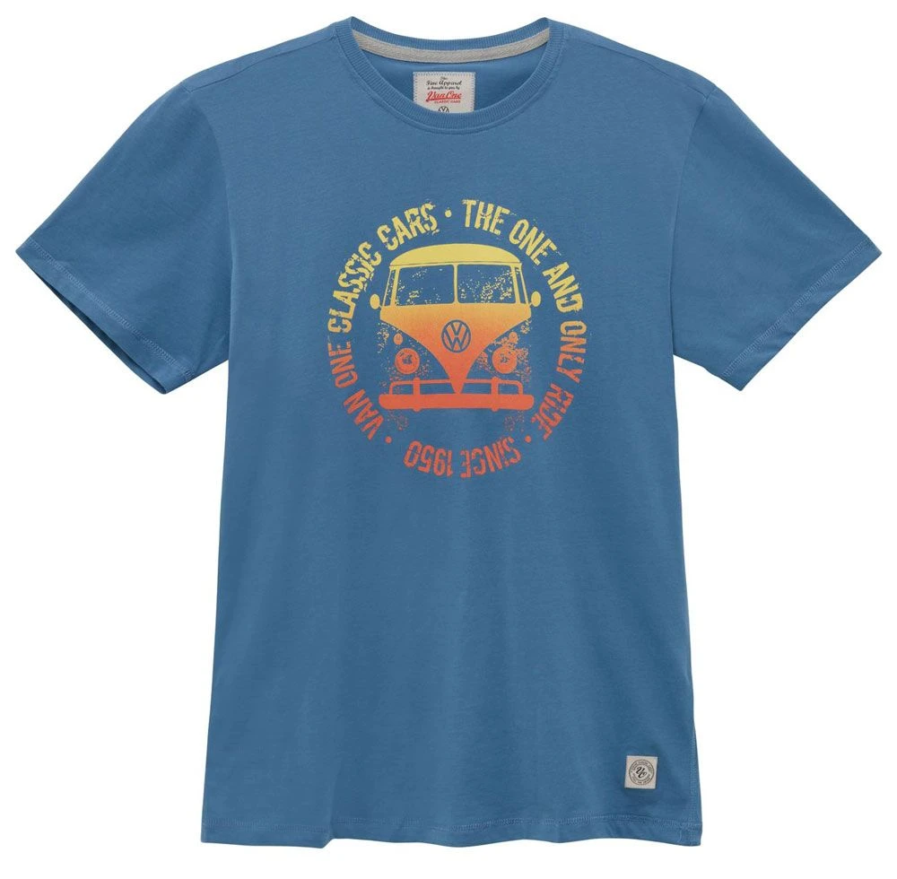 Dit is een prachtig en zacht kwaliteits t-shirt van het merk Van One Classic Cars. De originele T1 bulli van Volkswagen staat erop incl. logo.