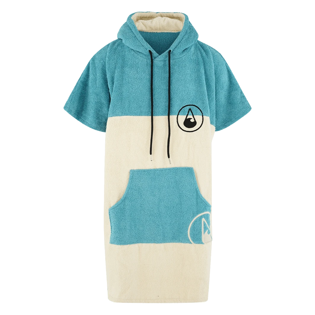 Comfortabele poncho in maat M/L gemaakt van 100% katoen, gecertificeerd volgens Oeko Tex Standard 100. Aangenaam op de huid en functioneel zoals gewoonlijk. Tweelaagse, bijzonder warme capuchon met hoge kraag, koord en metalen oogjes. De twee voorzakken bieden ruimte voor keukengerei zoals shampoo of borstel of je koude handen. Een echte blikvanger. De zorgvuldig geselecteerde stoffen zijn bijzonder donzig en huidvriendelijk. Duurzaamheid en natuurlijkheid bij de keuze van de grondstoffen spelen bij ons een grote rol – niet alleen in het belang van uw huid. Of het nu na het douchen is – tijdens het sporten en thuis, in het zwemparadijs, in de thermen, tijdens de watersport, in de sauna, in de fitnessstudio, tijdens het kamperen etc. Je poncho houdt je altijd lekker warm, gaat niet weg je staat in de regen en houdt je als mobiele kleedkamer bij het omkleden tegen nieuwsgierige blikken. Gemakkelijk schoon te maken, wasbaar in de machine en geschikt voor de droger.